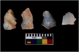 | Description / विवरण | There are n 4 of utilized worked cores and show multidirectional irregular scar pattern on both dorsal and ventral sides. |