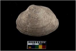 | Description / विवरण | Specimen of a large bivalve marine shell with ground edge. Probably used as spoon. |