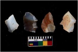 | Description / विवरण | There are n 4 of utilized worked cores and have multidirectional scar pattern. Two are tapering at one end. |