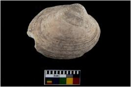 | Description / विवरण | Specimen of a large bivalve marine shell with sharp edge. Probably used for scraping the vessel. |