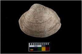 | Description / विवरण | Specimen of a large bivalve marine shell with ground edge. Probably used as spoon. |