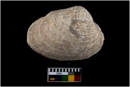| Description / विवरण | Specimen of a large bivalve marine shell with ground edge. Probably used as spoon. |