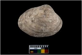 | Description / विवरण | Specimen of a large bivalve marine shell with ground edge. Probably used as spoon. |