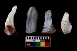 | Description / विवरण | There are n 4 flakes tool; there are flakes with sides trimmed, Marks of secondary flaking are present on the both the faces. The dorsal is relatively flat. |