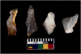 | Description / विवरण | There are n 4 flakes tool; there are flakes with sides trimmed, Marks of secondary flaking are present on the both the faces. The dorsal is relatively flat. |