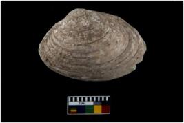 | Description / विवरण | Specimen of a large bivalve marine shell with ground edge. Probably used as spoon. |