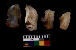 | Description / विवरण | There are n 4 flakes tool; there are flakes with sides trimmed, Marks of secondary flaking are present on the both the faces. The dorsal is relatively flat. |