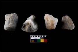 | Description / विवरण | There are n 4 of utilized worked cores and show irregular scar pattern on both dorsal and ventral side. One has a broken tip. |