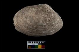 | Description / विवरण | Specimen of a large bivalve marine shell with sharp edge. Probably used for scraping the vessel. |