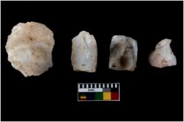 | Description / विवरण | There are n 4 of utilized worked cores and show irregular scar pattern on both dorsal and ventral side. Three have a flat base. |