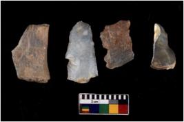 | Description / विवरण | There are n 4 flakes tool; there are flakes with sides trimmed, Marks of secondary flaking are present on the both the faces. |