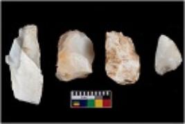 | Description / विवरण | There are n 4 of utilized worked cores. They show multidirectional irregular scar pattern and one is elongated in shape. |