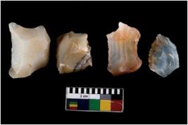 | Description / विवरण | There are n 4 ; worked utilized flakes; there are multidirectional irregular scar pattern on both dorsal and ventral face of the flakes. All are having sharp edges. |