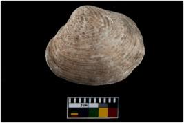 | Description / विवरण | Specimen of a large bivalve marine shell with ground edge. Probably used as spoon. |