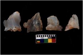 | Description / विवरण | There are n 4 flakes tool; there are flakes with sides trimmed, Marks of secondary flaking are present on the both the faces. |