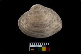 | Description / विवरण | Specimen of a large bivalve marine shell with ground edge. Probably used as spoon. |