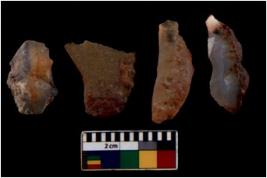 | Description / विवरण | There are n 4 flakes tool; there are flakes with sides trimmed, Marks of secondary flaking are present on the both the faces. The dorsal is relatively flat. |