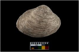| Description / विवरण | Specimen of a large bivalve marine shell with ground edge. |