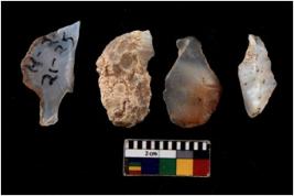 | Description / विवरण | There are n 4 flakes tool; there are large flakes with sides trimmed, Marks of secondary flaking are present on the both the faces. One is pointed functional top. |