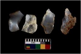 | Description / विवरण | There are n 4 flakes tool; there are multidirectional irregular scar pattern on them; made of short flakes and all four have tapering edges. |