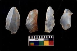 | Description / विवरण | There are n 4 flakes tool; there are flakes with sides trimmed, Marks of secondary flaking are present on the both the faces. |