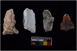 | Description / विवरण | There are n-4 of utilized flake cores. There are multidirectional irregular dominant scar pattern on both dorsal and ventral face of the cores. |