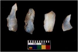 | Description / विवरण | There are n 4 flakes tool; there are multidirectional irregular scar pattern on them; made of short flakes and all four have tapering edges. |