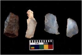 | Description / विवरण | There are n 4 flakes tool; there are flakes with sides trimmed, Marks of secondary flaking are present on the both the faces. |