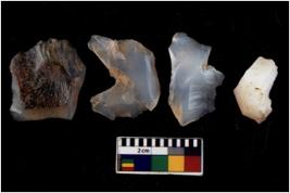 | Description / विवरण | There are n 4 flakes tool; there are flakes with sides trimmed, Marks of secondary flaking are present on the both the faces.The dorsal is relatively flat. |