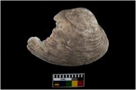 | Description / विवरण | Fragment of a bivalve marine shell with irregular shape. |