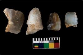 | Description / विवरण | There are n 4 ; worked utilized flakes; there are multidirectional irregular scar pattern on both dorsal and ventral face of the flakes. All are having sharp edges. |