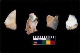 | Description / विवरण | There are n 4 flakes tool; there are flakes with sides trimmed, Marks of secondary flaking are present on the both the faces. The dorsal is relatively flat. |