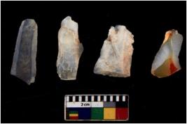 | Description / विवरण | There are n 4 flakes tool; there are multidirectional irregular scar pattern on them; made of short flakes and all four have tapering edges. |