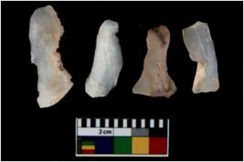 | Description / विवरण | There are n 4 utilized flake cores. There are multi directional irregular scar pattern on them. All of them are tapering at one end. |