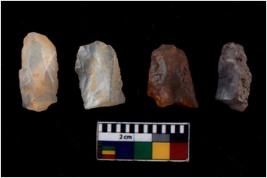 | Description / विवरण | Specimen of fluted cores having several broad fluted marks indicating the detached blades from it. |