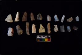 | Description / विवरण | There are n 20 flakes tool; there are multidirectional irregular scar pattern on them; made of short flakes and few have tapering edges. |