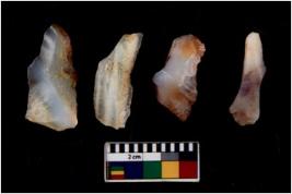| Description / विवरण | There are n 4 flakes tool; there are multidirectional irregular scar pattern on them; made of short flakes and all four have tapering edges. |