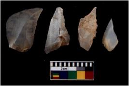 | Description / विवरण | There are n 4 flakes tool; there are large flakes with sides trimmed, Marks of secondary flaking are present on the both the faces. One is pointed functional top. |