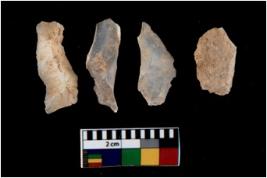 | Description / विवरण | There are n 4 utilized flake cores. There are multi directional irregular scar pattern on them. All of them are tapering at one end. |