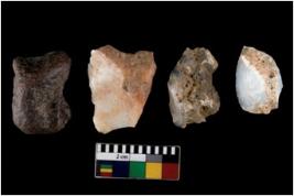 | Description / विवरण | There are n 4 ; worked utilized flakes; there are multidirectional irregular scar pattern on both dorsal and ventral face of the flakes. All are having sharp edges. |