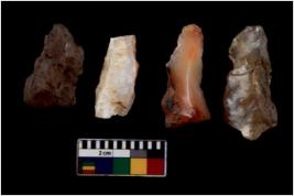| Description / विवरण | There are n 4 flakes tool; there are flakes with sides trimmed, Marks of secondary flaking are present on the both the faces. The dorsal is relatively flat. |
