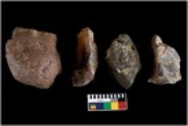 | Provenance / उद्गम/क्षेत्र | There are n 4 of utilized worked cores. They show multidirectional irregular scar pattern. Three are tapering at one end. |