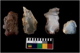 | Description / विवरण | There are n 4 ; worked utilized flakes; there are multidirectional irregular scar pattern on both dorsal and ventral face of the flakes. All are having sharp edges. |