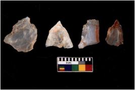 | Description / विवरण | There are n 4 flakes tool; there are flakes with sides trimmed, Marks of secondary flaking are present on the both the faces. |