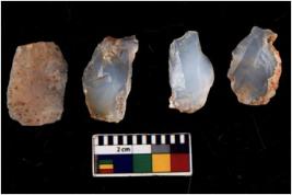 | Description / विवरण | There are n 4 flakes tool; there are flakes with sides trimmed, Marks of secondary flaking are present on the both the faces. |
