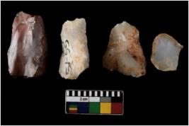 | Description / विवरण | There are n 4 ; worked utilized flakes; there are multidirectional irregular scar pattern on both dorsal and ventral face of the flakes. All are having sharp edges. |