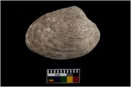 | Description / विवरण | Specimen of a large bivalve marine shell with ground edge. Probably used as spoon. |