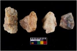 | Description / विवरण | Specimen of a cores with several broad fluted marks and some of them are tapering at one end. |