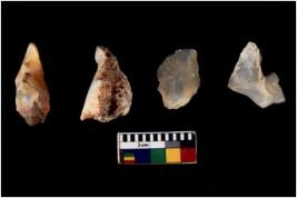 | Description / विवरण | There are n 4 flakes tool; there are multidirectional irregular scar pattern on them; made of short flakes and all four have tapering edges. |