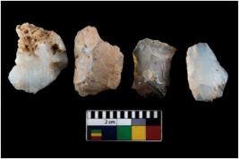 | Description / विवरण | There are n 4 ; worked utilized flakes; there are multidirectional irregular scar pattern on both dorsal and ventral face of the flakes. All are having sharp edges. |